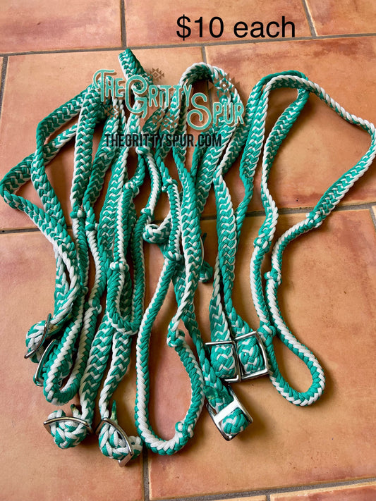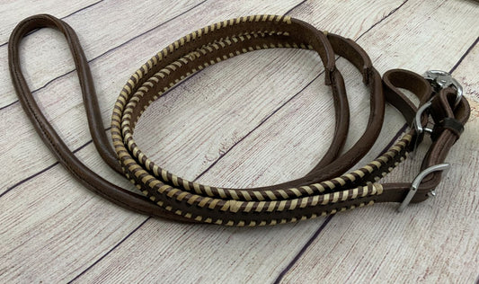 Brown Leather Rawhide Whip Stitch Roping Reins