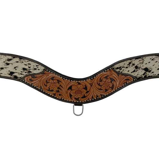 Floral Tooled Medium Leather Tripping Collar with Black Whipstitching