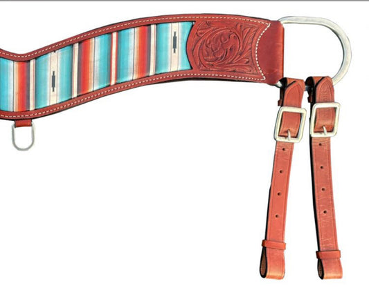 Tooled Dark Leather Tripping Collar with Wool Serape Saddle Blanket Inlay