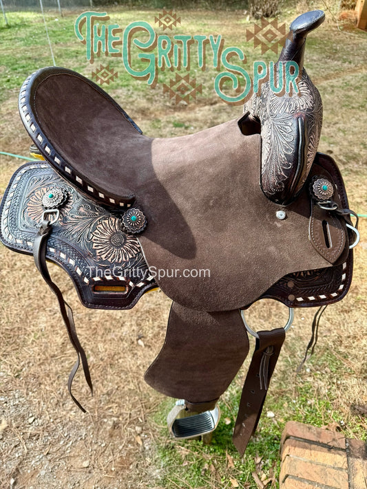 12, 13, 14 or 15 Mirco teal flower tooling barrel saddle