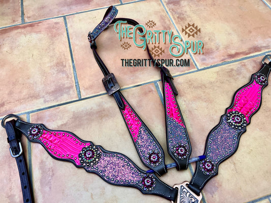 PRE ORDER - Hot pink gator with pink glitter tack set