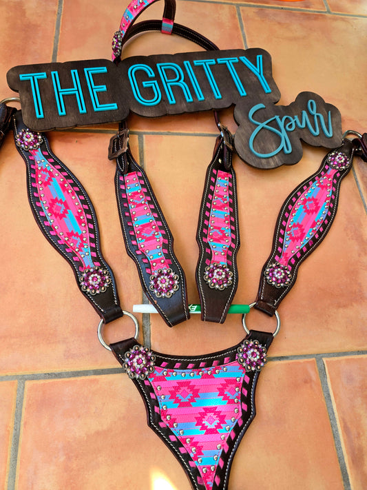 Sold outREADY TO SHIP- Pink Aztec tack set