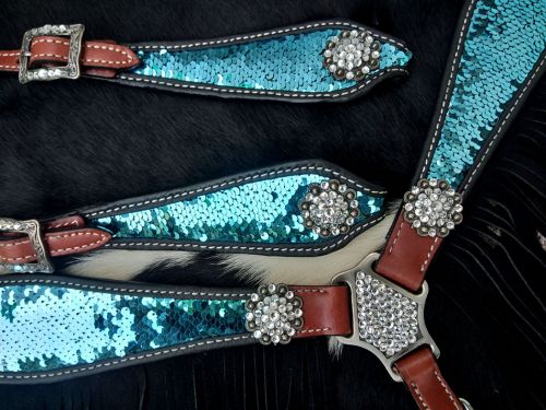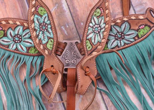 Feather, sunflower and cactus metallic rainbow fringe tack set