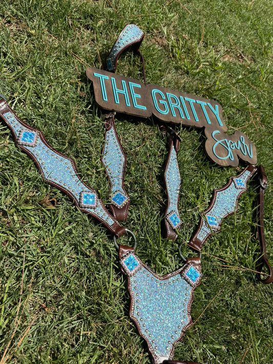 Hand painted barrel racer design headstall and breast collar set with conchos