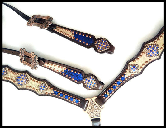 Dark Oil Browband Beaded Inlay Headstall and Breast collar Set