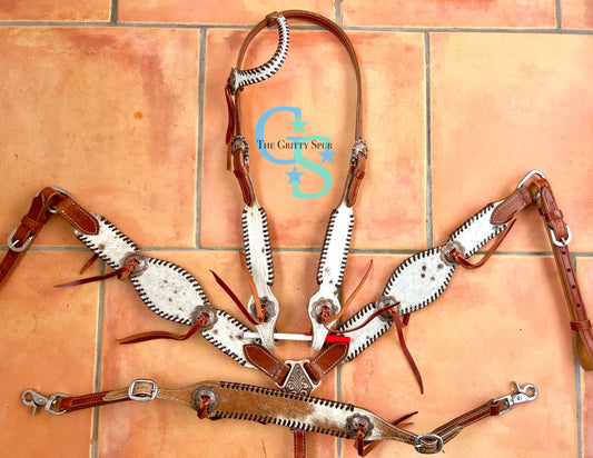 Wither strap with hair on cheetah inlay and bling conchos