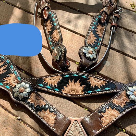 Sunflower tooled turquoise tack set