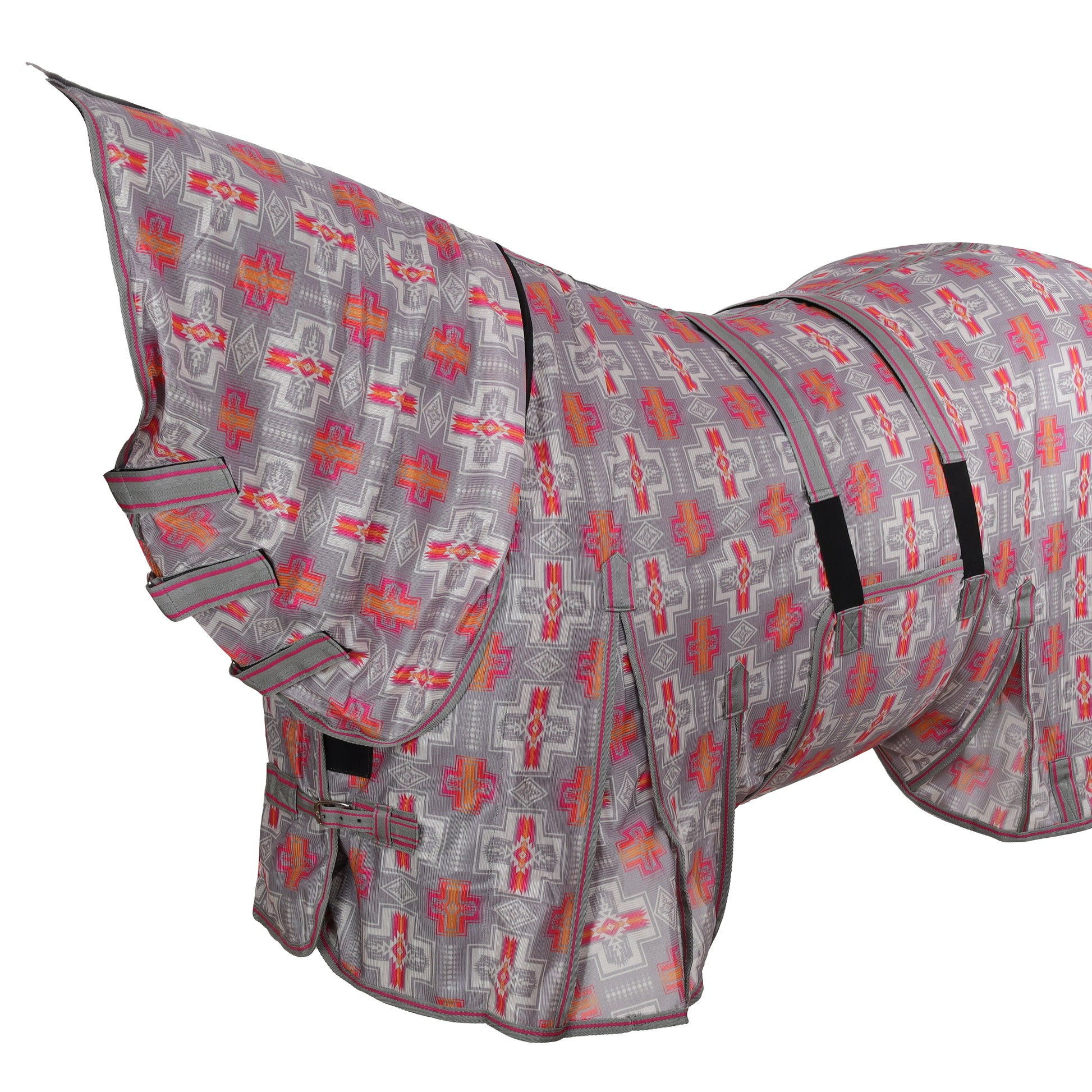 Afterglow Mesh Fly Sheet with Neck Cover is the perfect combination of protection and comfort for your horse. Made from lightweight, breathable mesh material, this fly sheet keeps your horse cool and comfortable while offering effective protection against flies, dust, and the sun. The vibrant gray, orange, pink, and white Afterglow print adds a stylish touch, making your horse stand out while staying protected. The mesh fabric is designed to provide excellent airflow, keeping your horse comfortable even during warmer weather.