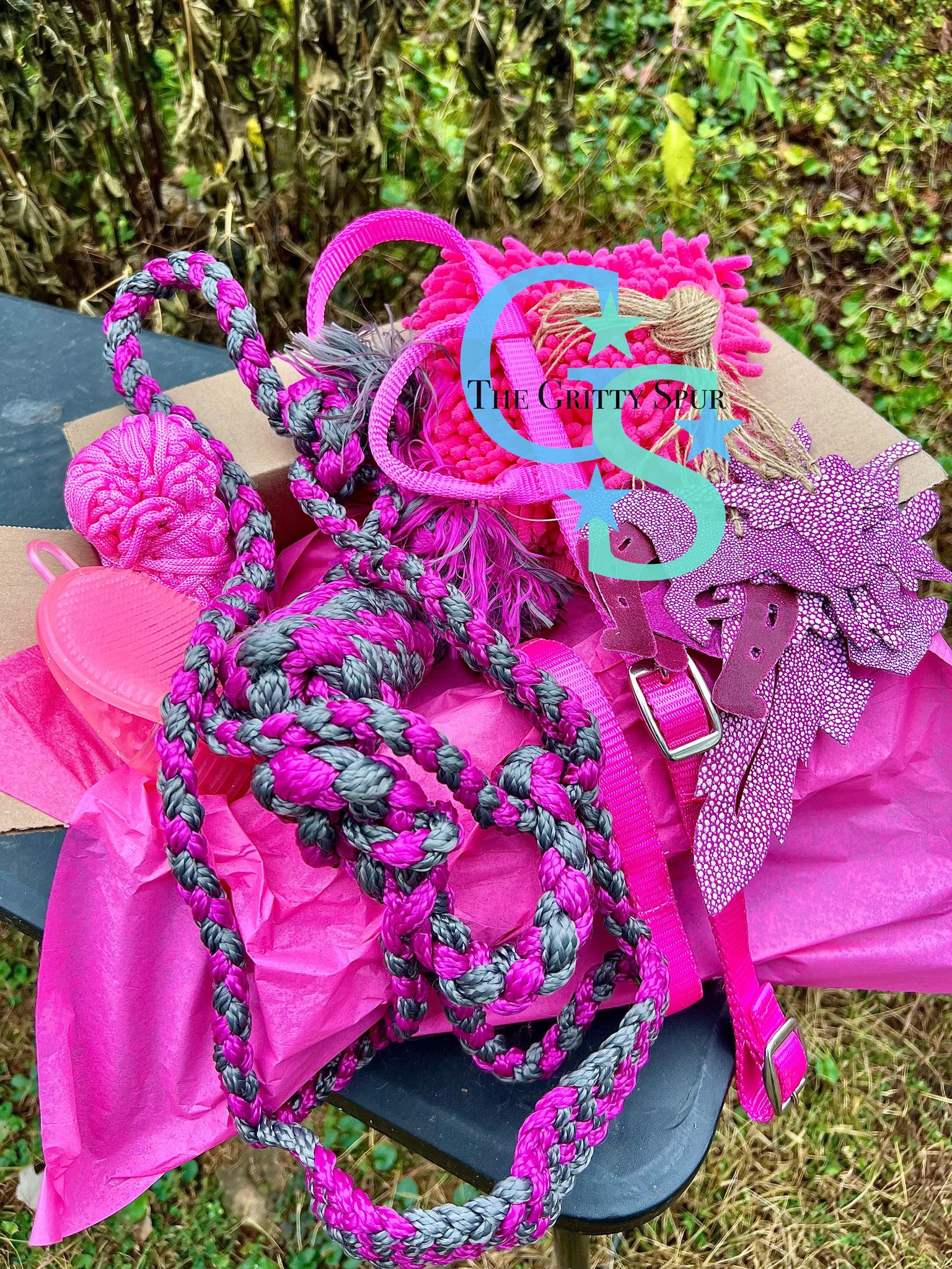 They can include anything from halters, headstalls, reins, hay bags, brushes, hats, treats, hair accessories and so much more!