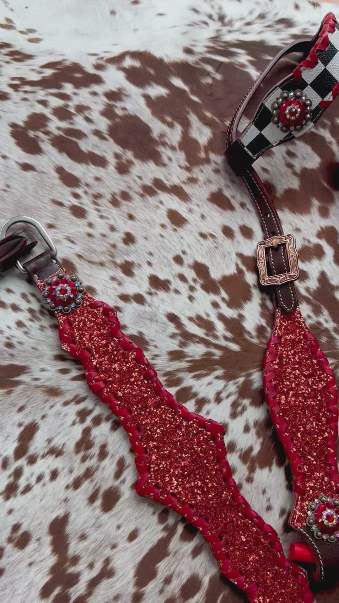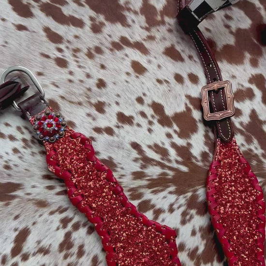 Transform your riding style with our Checker and Red Glitter Tack Set! Stand out in the ring with the bold checker pattern and sparkling red glitter accents. The perfect combination of fashion and function, this tack set will elevate your performance and leave a lasting impression.