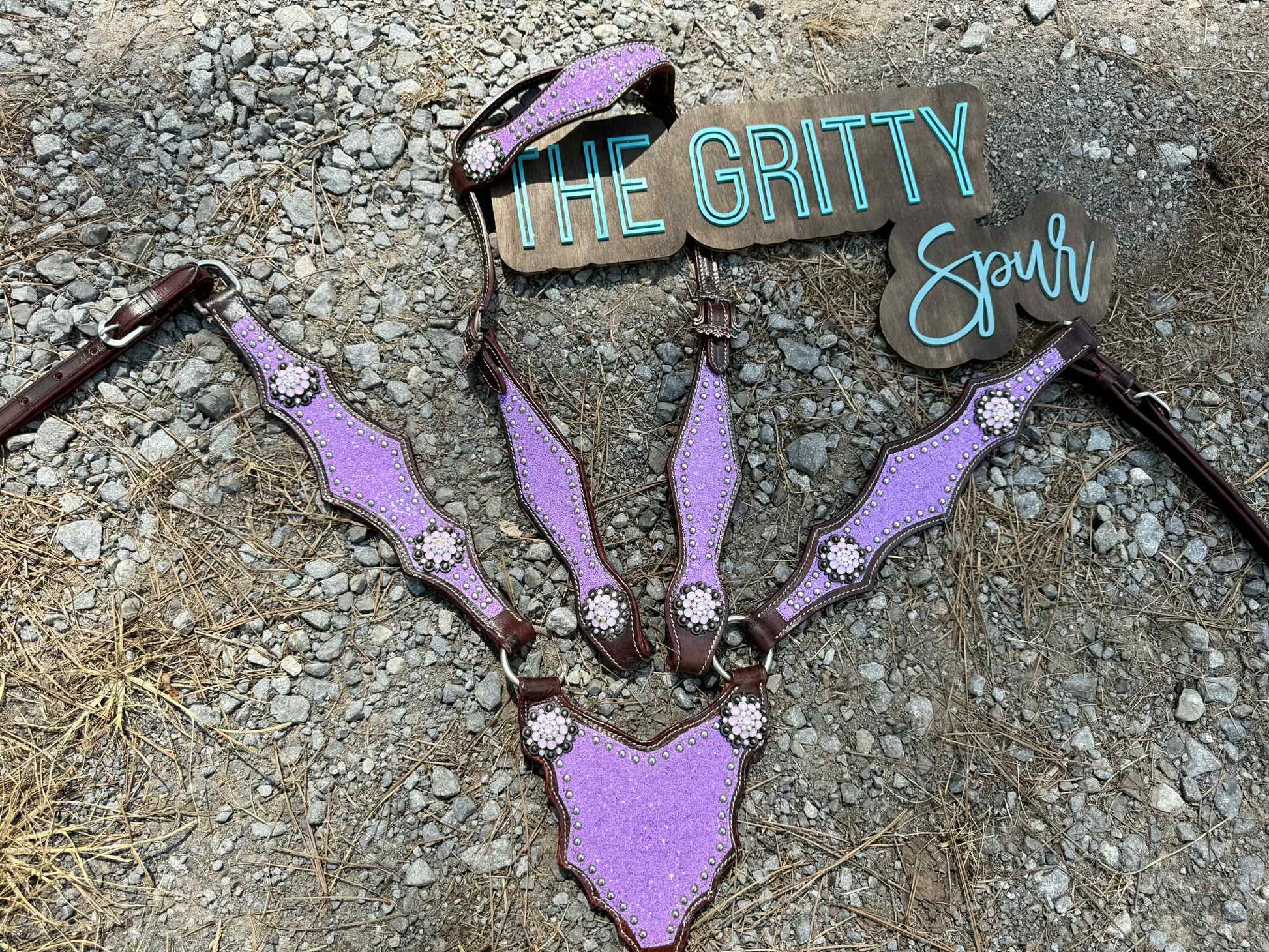 Elevate your riding game with this stunning lavender glitter tack set. Order today and stand out with gear that's as fabulous and fearless as you are.
