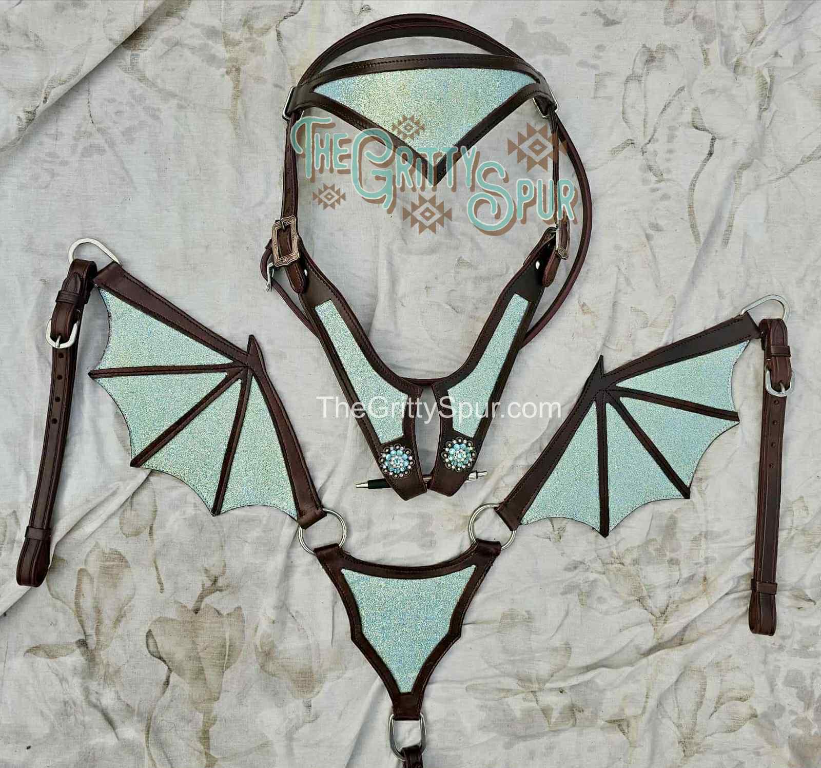 Elevate your riding game with this stunning light blue glitter dragon tack set. Order today and stand out with gear that's as fabulous and fearless as you are.
