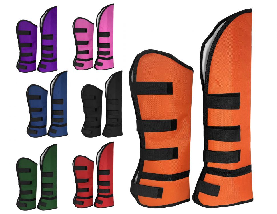 Shipping boots with velcro closure. Constructed of Cordura nylon outer shell with fleece lined inner shell with Velcro closures for perfect fit. Measures 21" tall for front legs and 25" tall for back legs.